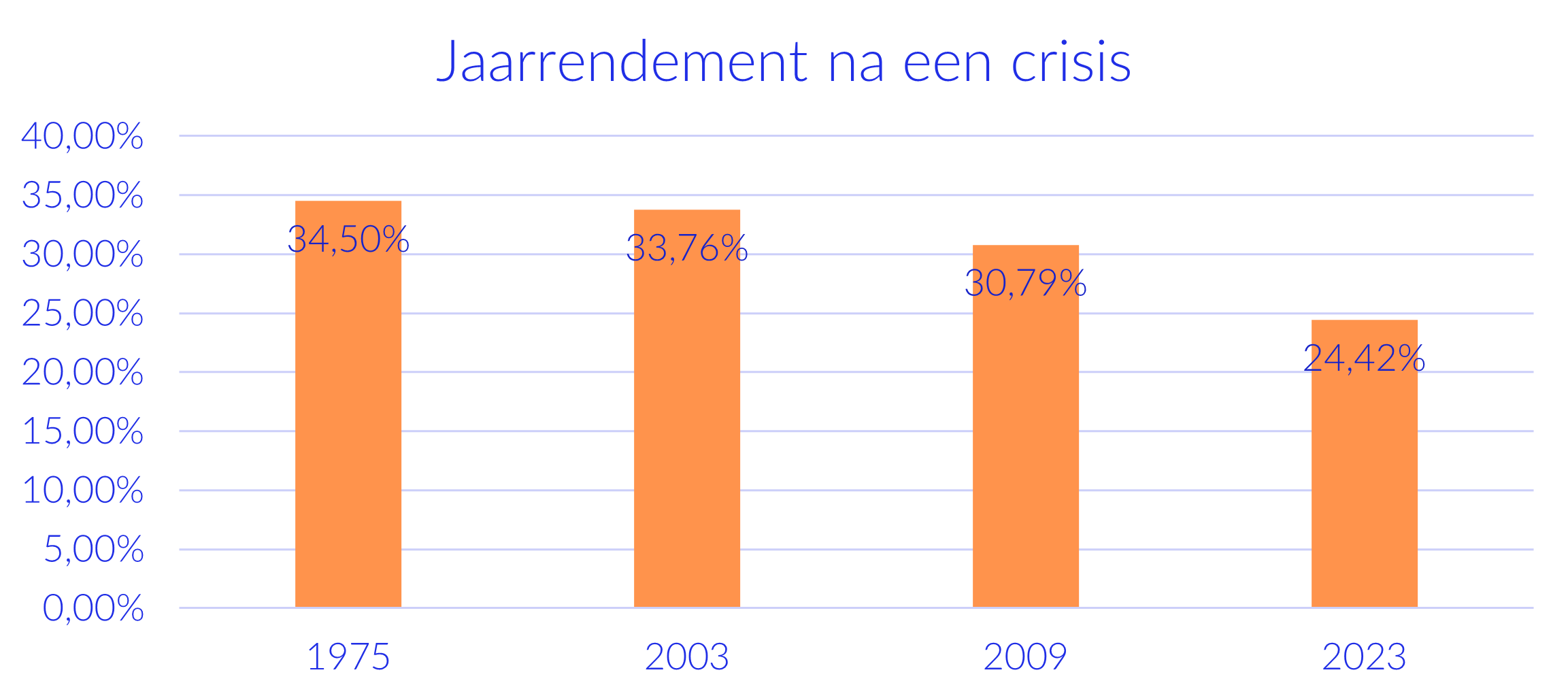 Maar zodra de rede terugkeert, liggen er vaak koopjes voor het oprapen. Het jaar na een crisis zagen we al meermaals mooie rendementen. Moraal van het verhaal? Paniek is zelden een goede strategie, geduld wel.