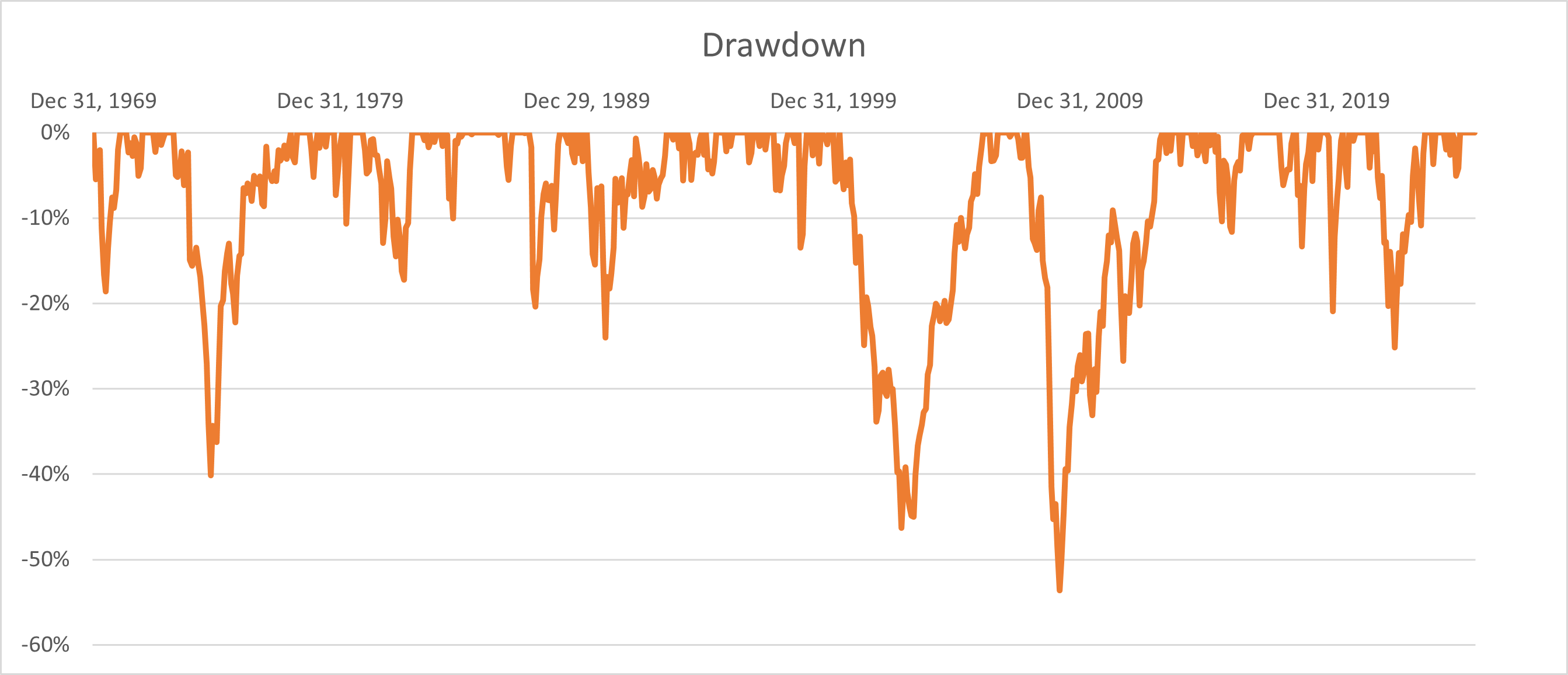 Van de 56 jaren waren er 42 winstjaren en 14 verliesjaren. Het verschil tussen het beste jaar (+42,80% in 1986) en het slechtste jaar (-40,33% in 2008) is een stevige 82%.