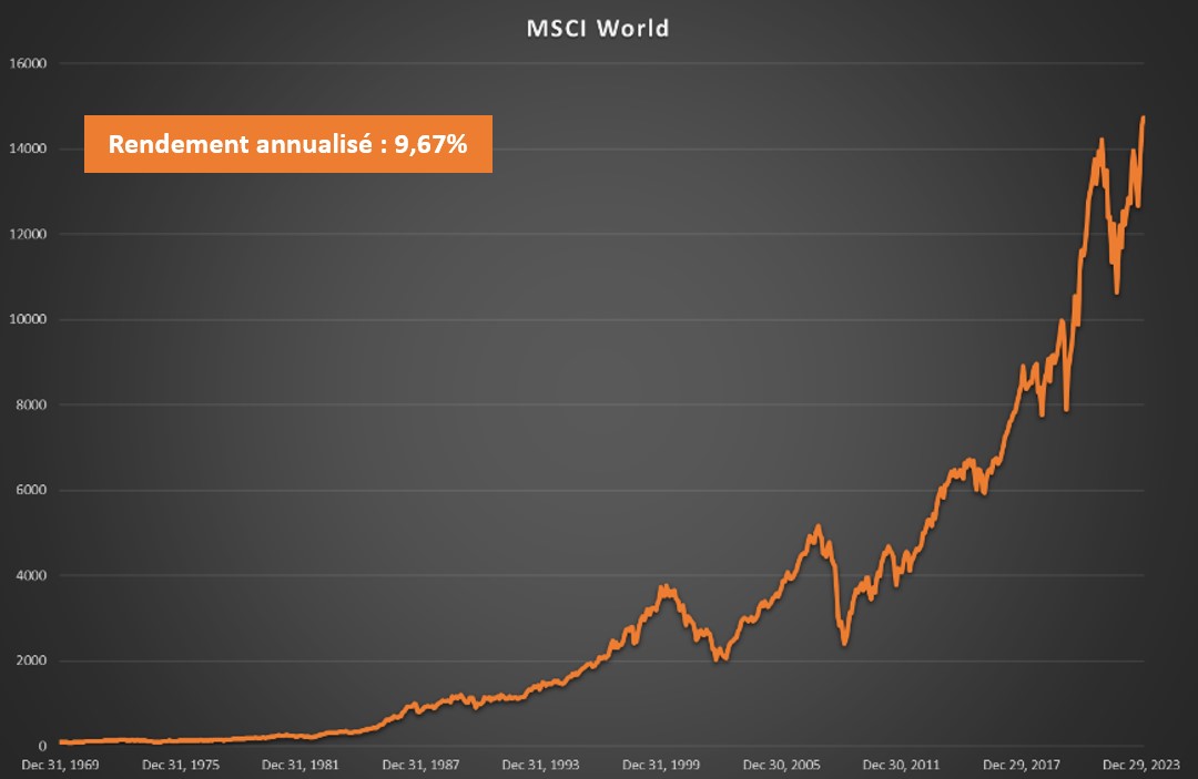 2. Évolution du MSCI World 1969 - 2024