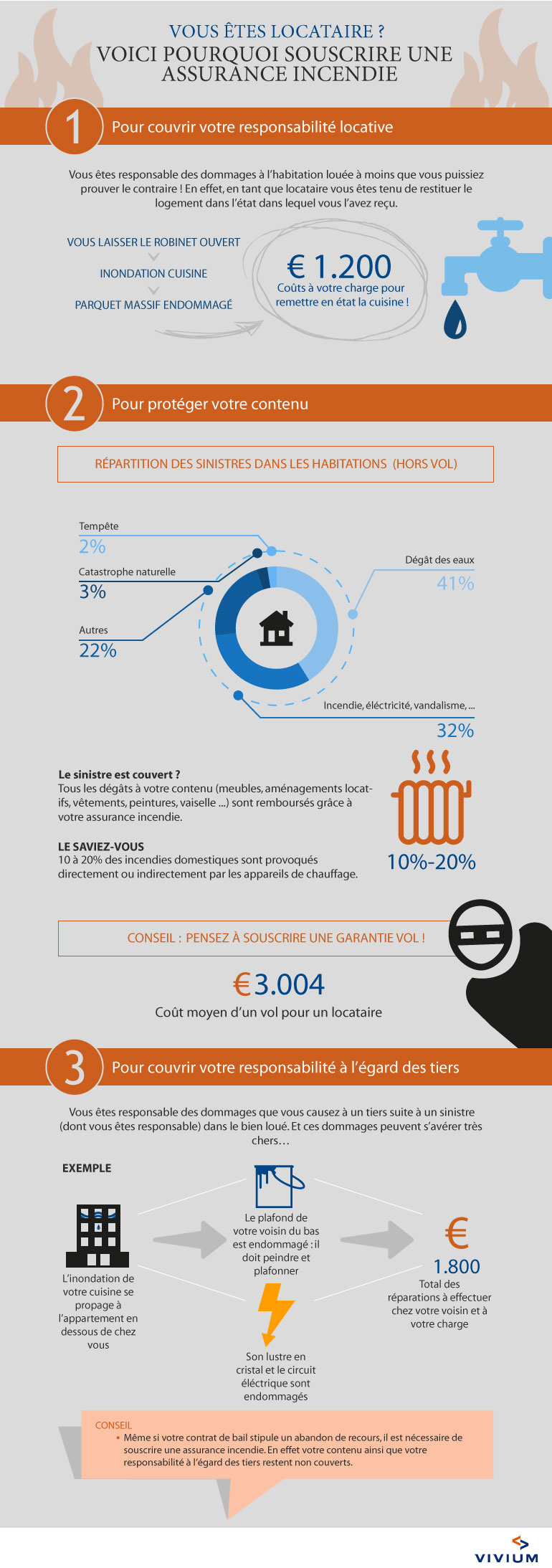 L'assurance incendie VIVIUM Habitation offre des garanties solides. Elle couvre votre responsabilité locative et protège votre mobilier contre tous les risques importants (incendie, explosion...), sans oublier votre responsabilité à l'égard de tiers suite à un sinistre couvert.